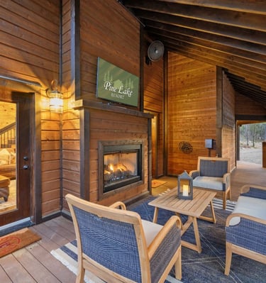 Red Baron Lodge is located at Pine Lake, which is just 5 minutes away from Beavers Bend State Park and only a short drive from all the great restaurants and attractions in Broken Bow and Hochatown. Our community has a picturesque, stocked lake for catch-and-release fishing, a community pool and playground, a spacious Clubhouse and grounds to congregate with other guests at Pine Lake, and a family-style Grill where you can dine-in or order right to your cabin! The Grill also serves alcohol. Our development was designed to allow each guest walking distance access to all of these great community amenities. Enjoy the quiet, tree-lined roads and walking trails, including bridges that pass over the lake, as you make your way toward the resort-style amenities that make Pine Lake the premier vacation destination in Broken Bow. Concierge services ranging from yard signs, photography, to grocery delivery can be arranged by calling us.