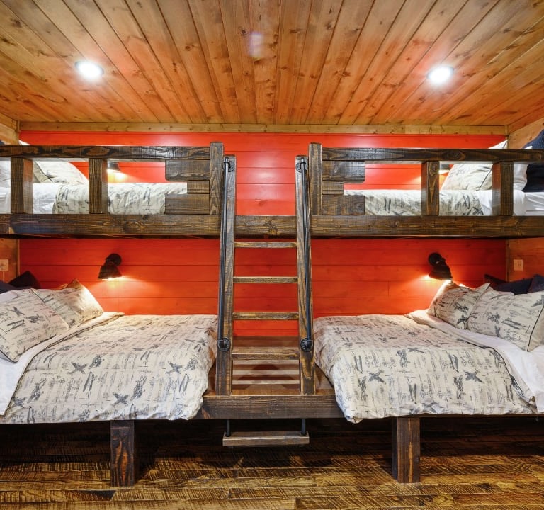 A third tastefully designed Master suite is on the second floor with an ensuite bathroom. Alongside the game room is the titular Red Baron aviator-style bunkroom with custom built bunks (two full beds and two twins.)