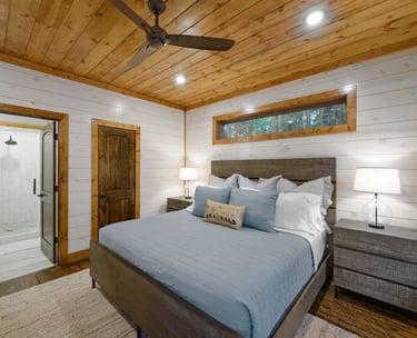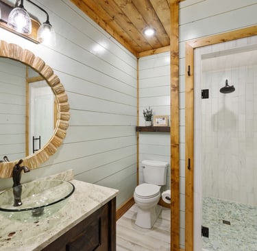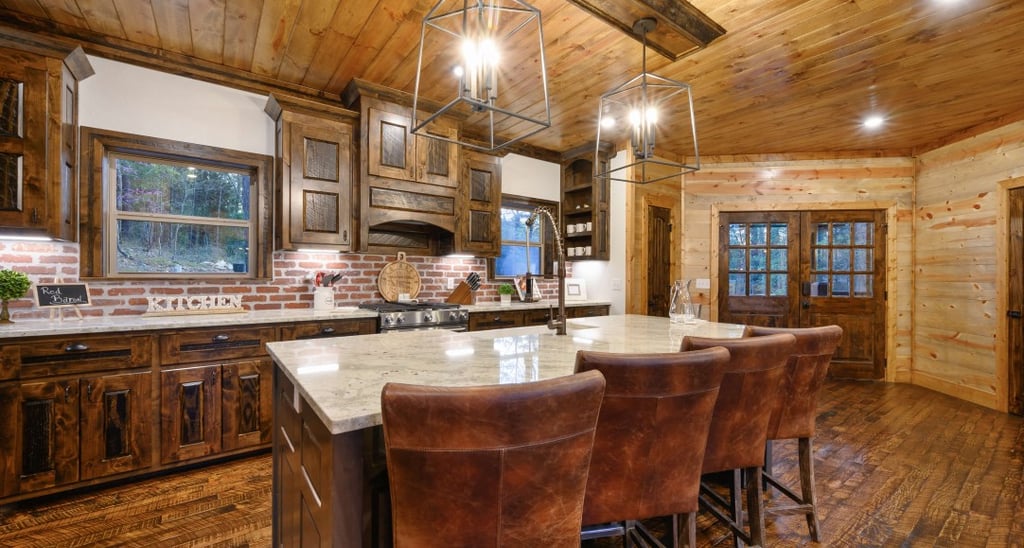 Red Baron Lodge is a one-of-a-kind masterpiece in beautiful Broken Bow, OK. With over 2,600 sq ft, this 4 bedroom 4.5 bath home, features 3 King master suites with en-suite bathrooms, bunk room with 2 fulls & 2 twins, and a loft with 2 fulls. Featuring a huge lodge-style fireplace, fully outfitted gourmet kitchen, and a game room with Foosball and an arcade. The wraparound porch includes a view-facing hot tub, outdoor dining table, and grill.