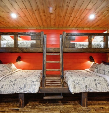 The Red Baron Lodge is such a perfect getaway for the family! It easily accommodated a few families depending on size. The kids LOVED the entire upstairs…the bunk room, the loft bed, the video games! It is so darn cozy and perfect for them! I love how the cabin has two king suites which is perfect for multiple families. The kitchen is so well stocked and organized and CLEAN!!! This place feels like it’s new still! The hot tub was a hit too as was the grill for dinner time. The location of the cabin makes you feel like you’re in the middle of the woods yet still so close to the attractions, restaurants etc. Lastly, the booking agents were very accommodating and we had zero issues! Would stay again and again!